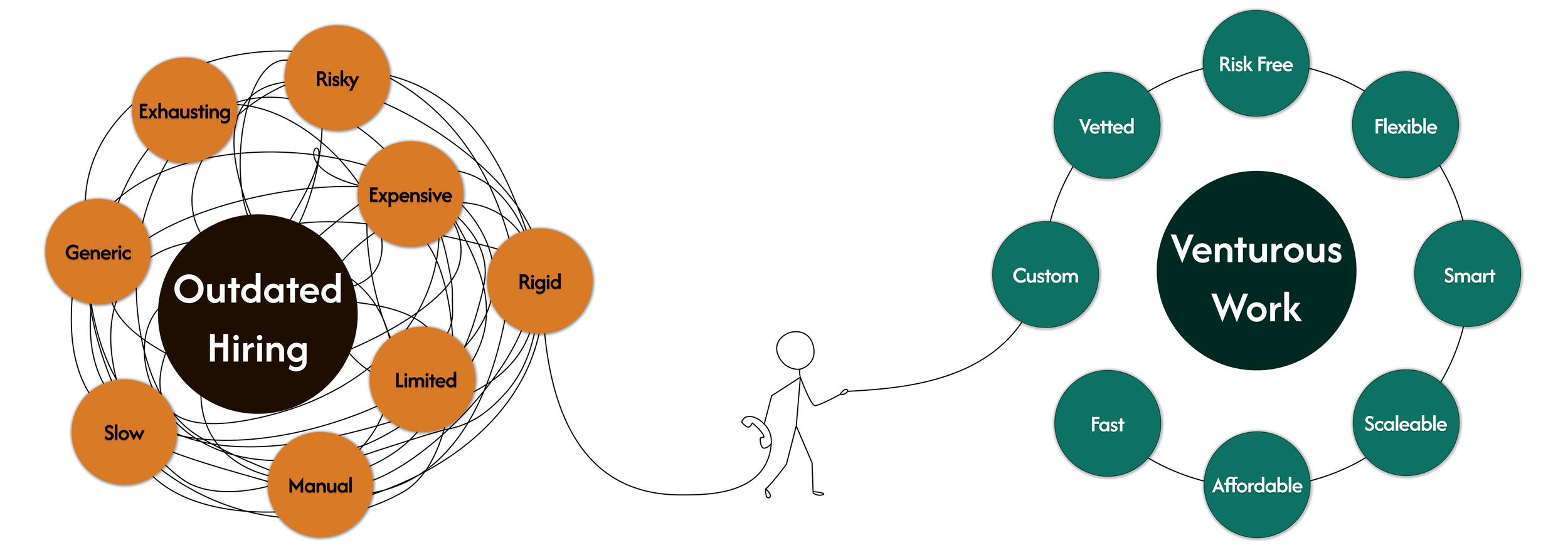 Venturous ensures that companies have access to the seasoned problem solvers they need to grow and scale, without the costs and commitments of full-time hires.