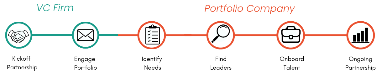 Our seasoned leaders help VCs and portfolio companies save time, cut costs, and access top-tier talent with full support, ensuring their portfolio companies build the right teams to drive success and maximize ROI.